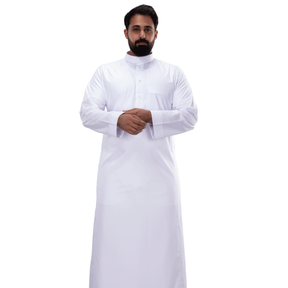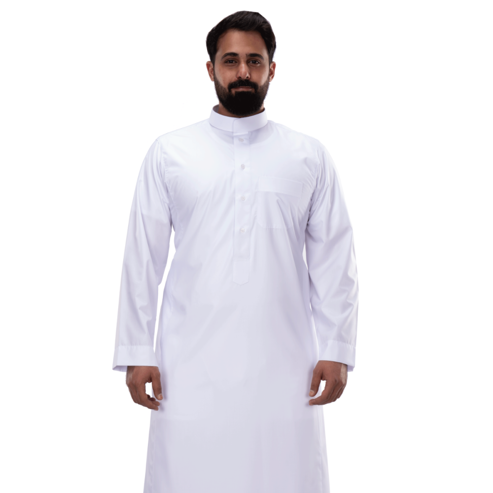 الوصف الكامل – ثوب دروش رجالي / قبة كيرف / أبيض سادة: