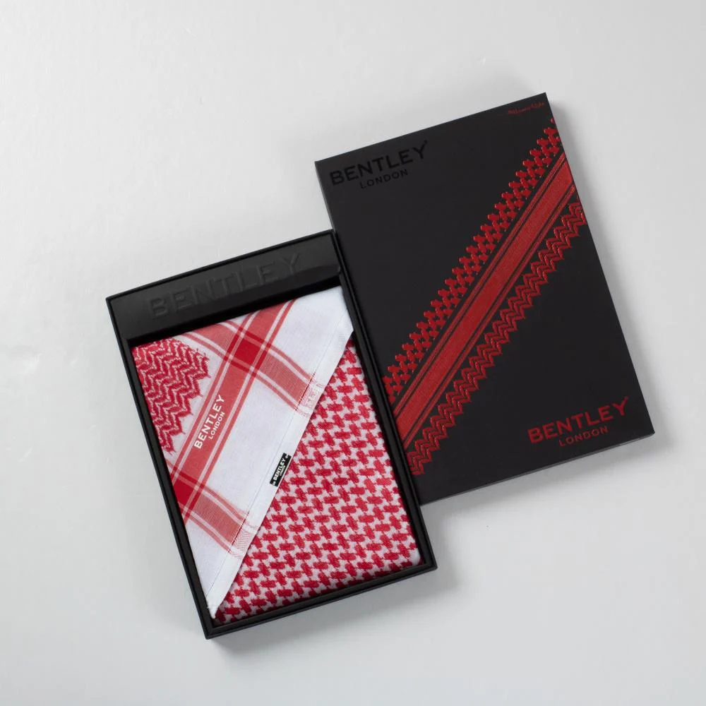 شماغ بنتلي BENTLEY أحمر المميز كلاسيك 2025 الجديد ختم ابيض المعروف بالحديدة السودة هو الخيار الأمثل للرجل العربي الباحث عن الأناقة والفخامة. يتميز شماغ بنتلي بالصناعة الإنجليزية الخالصة والفاخرة والمصنوع بأجود أنواع القطن 100% حيث يجمع بين التراث العربي العريق واللمسات العصرية الحديثة، مما يجعله مناسبًا للمناسبات الرسمية واليومية على حد سواء.